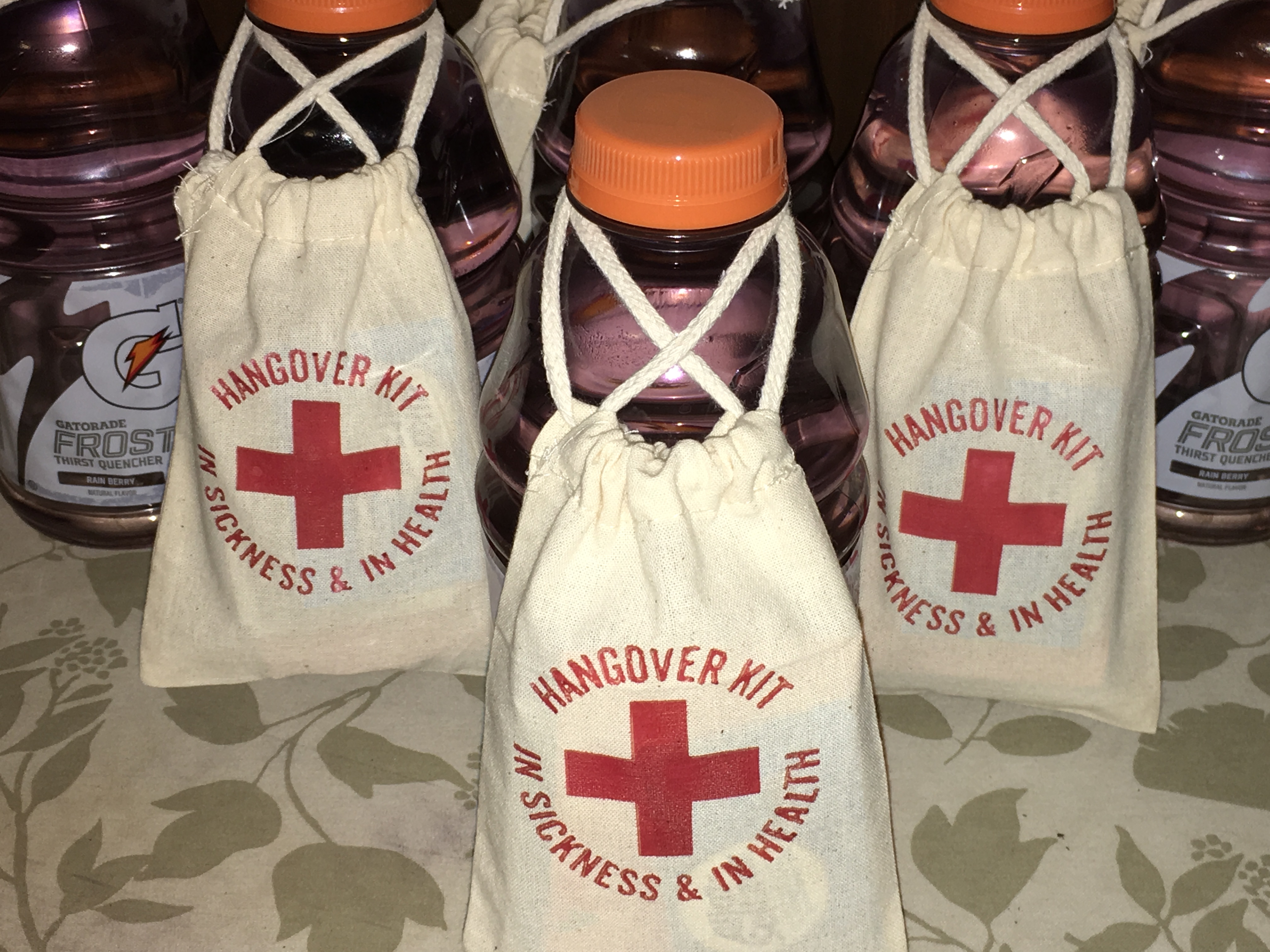 If your planning a night out with the boys/girls, these make the perfect favors for recovering the morning after. They are a hit at bachelor/bachelorette parties, weekend getaways, and birthday parties. Bags are sold empty or filled with contents shown (Gatorade not included)